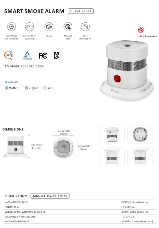 Zigbee 3.0 smoke detector HS2SA-5 from Heiman