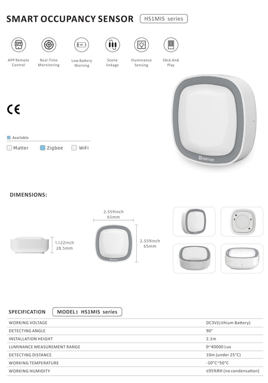 Zigbee 3.0 infrared presence detector HS1MIS
